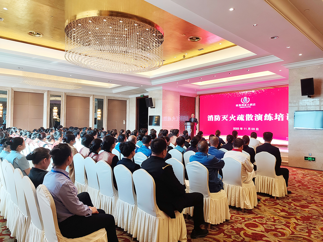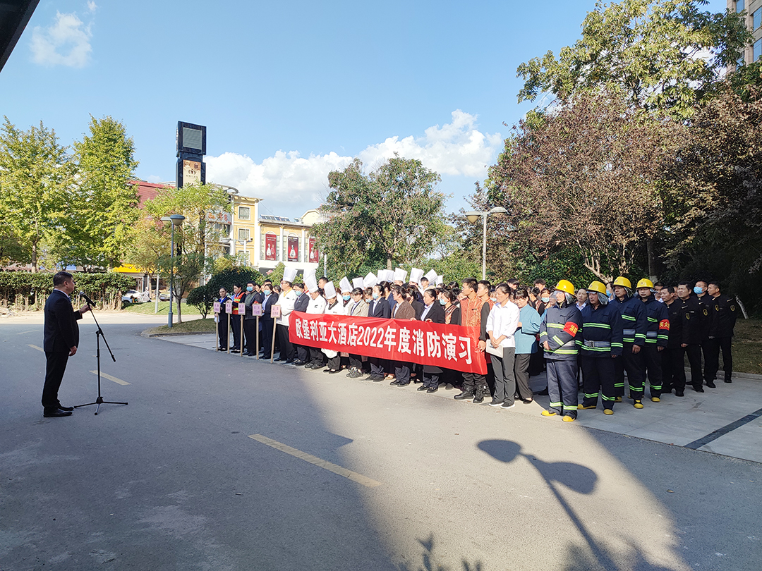 为进一步增强酒店员工的消防安全意识,掌握消防安全知识和技能,提高抗击突发消防事件的应对能力,确保酒店财产和宾客、员工的人身安全,2022年11月3日下午,欧堡利亚大酒店组织开展了消防灭火应急疏散演练活动。 欧堡利亚酒店集团总经理兼大酒店董事长邓栋先生一直以来对大酒店消防工作高度重视,并对大酒店消防工作作出具体要求:一是重视消防安全宣传培训工作,牢固树立“生命至上、安全第一、预防为主”的安全思想,大力宣传安全教育知识,切实提高全员消防安全意识;二是不断完善消防应急处置预案,落实消防安全管理制度,掌握消防“四个能力”;三是以消防演练为契机,规范管理、落实责任,加强消防安全自查自纠工作,把安全隐患消除在萌芽状态,真正做到“防患于未然”,为切实保障酒店安全生产打下坚实的基础。