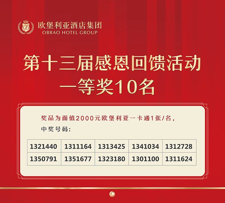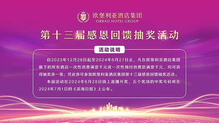 ▲欧堡利亚酒店集团第十三届感恩回馈活动抽奖规则